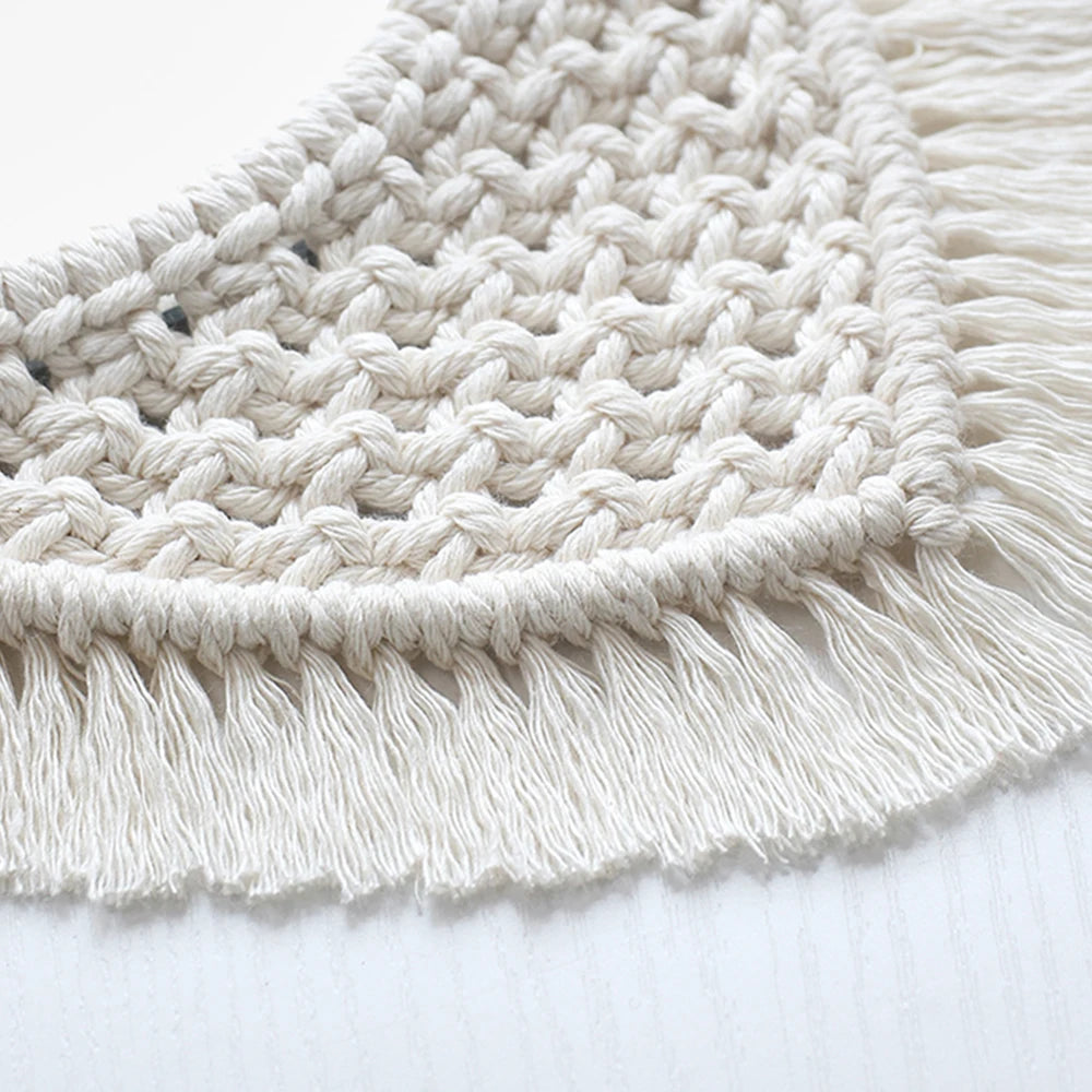 Enhance your living space with this Hanging Wall Decorative Mirror featuring an elegant macrame fringe. Crafted from durable plastic, the round mirror measures 15 cm in diameter, with an overall outer diameter of 25 cm, making it a perfect accent piece for any home decor. The intricate macrame pattern adds a touch of artisanal charm and texture, creating a warm and inviting atmosphere. Lightweight and easy to hang, this mirror requires no batteries and is designed for effortless installation. Its clean white color complements various interior styles, offering both functionality and aesthetic appeal. Free shipping is included for added convenience.