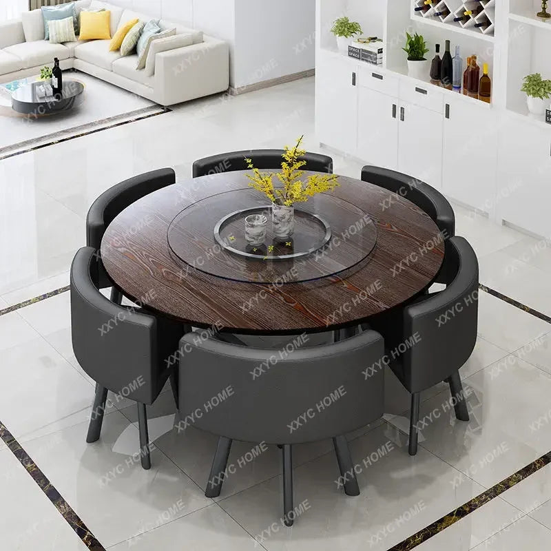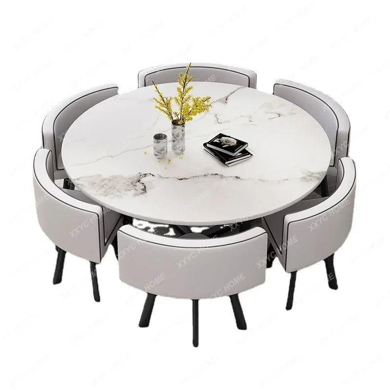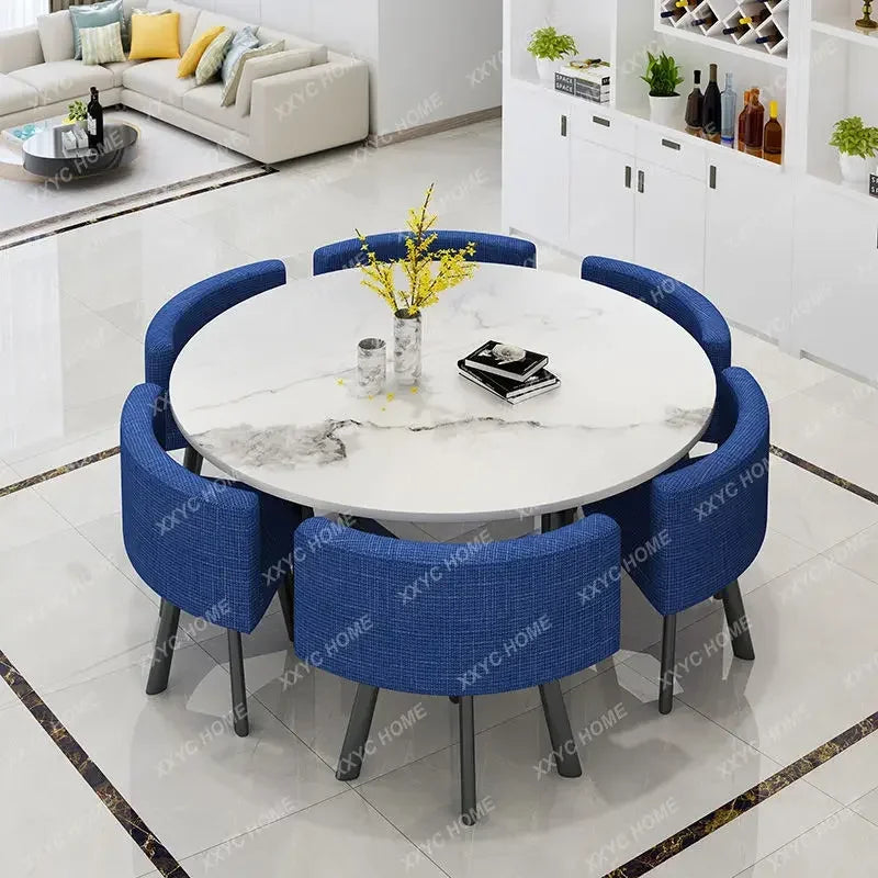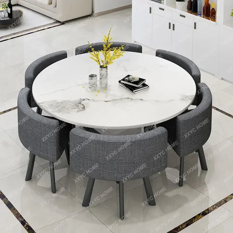 The Simple Round Table and Chair Set embodies minimalist modern design with a Scandinavian influence, perfect for contemporary dining spaces. Crafted from high-quality wood-based panels, this set comfortably accommodates up to six people, making it ideal for family meals or small gatherings. Its compact round shape, measuring under 1200mm in diameter, maximizes space efficiency without sacrificing style. The set requires no complex installation, offering a self-contained setup for immediate use. Free shipping is included, with optional delivery via DHL, FedEx, or UPS. This durable, chemical-free furniture enhances any dining room with clean lines and functional elegance.